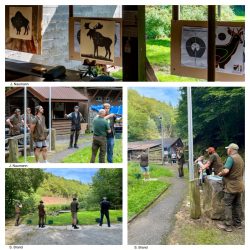 Spaßschießen statt Meisterschaft – unter diesem Motto stand unser diesjähriges Sommerfest! Amerikanische Büffel, Elche und Weißwedelhirsche gehören normalerweise nicht zum Repertoire auf unserem Schießstand. Auch daher war es ein besonderes Ereignis, als die Kasseler Jägerschaft Hubertus am Samstag zum Familienfest nach Helsa eingeladen hat. Es wurde ausdrücklich darum gebeten die gesamte Familie mitzubringen. So stand unser Sommerfest ganz im Zeichen des Kennenlernens und gemütlichen Beisammenseins. Statt knallharter Meisterschaft wurde in entspannter Atmosphäre eine abwechslungsreiche und vom Spaß bestimmte Vereinsmeisterschaft geboten. Die Jüngeren konnten dabei mit dem Lasergewehr ungefährliche Erfahrungen sammeln und die erwachsenen Teilnehmer hatten nordamerikanisches Großwild vor der Büchse. Daneben konnte man den Doppelkeiler im schnellen Lauf von links und rechts abpassen und mit der Flinte im Doppeltrap, beim Rollhasen und natürlich dem Looper punkten.